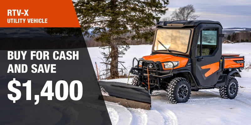 *For all offers: Prices and payments include freight and other applicable fees (including environmental fees, administration fees, set-up fees, and dealer fees). Taxes, delivery fees, insurance and registration are extra. Dealer may sell for less. Dealer order/trade may be necessary (but may not be available in all cases). Some restrictions apply. Offers valid only at participating dealers in Canada and are subject to change, cancellation or extension at any time without notice or obligation. Minimum down payment of 10% required for financing offers on turf and agricultural products. Specifications, features, illustrations and equipment shown are based on the latest available information at the time of publication. Some models are shown with optional accessories available at extra cost. Although descriptions are believed to be correct, accuracy cannot be guaranteed. We reserve the right to make changes at any time, without notice or obligation to specifications, accessories, materials, models, prices, payments and other information. Offer valid until January 12, 2026. See your participating Kubota dealer or visit www.kubota.ca for complete details.