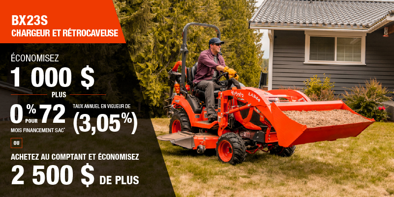 Transformez votre projet d’automne en un chef-d’œuvre grâce à un équipement digne de confiance qui travaillera aussi dur que vous. Découvrez nos offres d'automne pour trouver les outils qui vous aideront à accomplir vos tâches cet automne. Kubota a tout ce dont vous avez besoin pour un automne couronné de succès avec des tracteurs, des tondeuses, des RTV. Conquérez n'importe quel travail avec style grâce à Kubota.